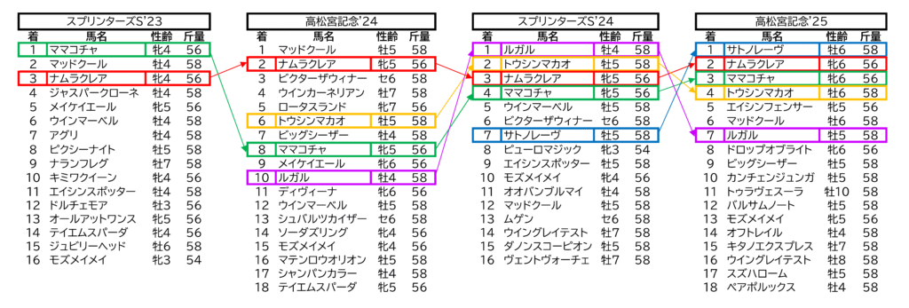 だとするとこれで「以上終わり」なのだが、そんな簡単ではあるまいし特徴にあえて書かなかったのが「勝ち馬が全て異なる」点が『一筋縄では終わらない』を物語っている。