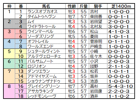 そんな事を「頭の隅っこ」に入れながら、出走馬の芝1400mの実績を見てみよう。