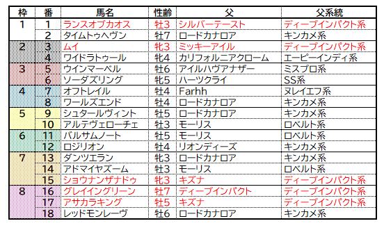 加えて①ランスオブカオス⑮ショウナンザナドゥ⑰アサカラキングにも注目だ。