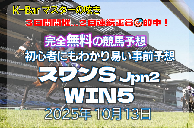 【完全無料の競馬予想】スワンS・WIN5…25年10月13日