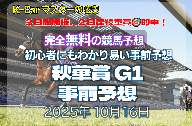 さぁ2025年G1シリーズ(秋編)本番開幕です。(スプリンターズSはありましたが、結果が結果でしたし中2週も空いてしまったので…)