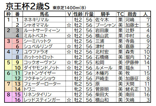 その中でも今週はG2京王杯2歳Sという事で…と思ったのですが、16頭いるもののメンバーは意外と薄め。