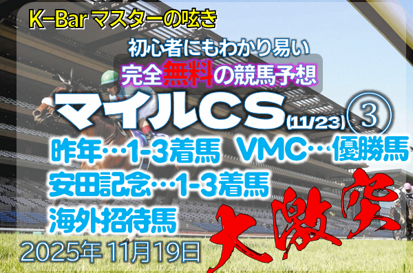 昨日から始めたマイルCS事前予想…今日はパート3です。