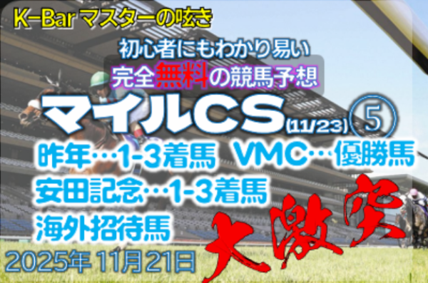 明日午前中は福島記念を中心とした当日のレース予想(251122-001)を、夜にこのマイルCSの予想(251123-001)をUpしたいと考えています。