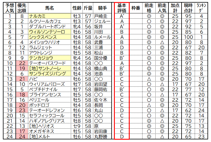但し、それぞれの「差」は僅かで、調教分析が終わり、枠順が発表になり、騎手事情が整理できれば、順番が変わる可能性は十分にあります。
