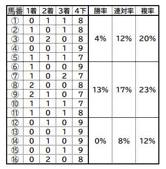 ➡勝ち馬は1番人気必須、2~3着なら9番人気以上