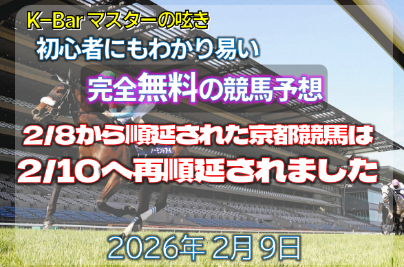 【完全無料の競馬予想】…2月8日から順延された2月9日京都競馬は2月10日に再順延されました