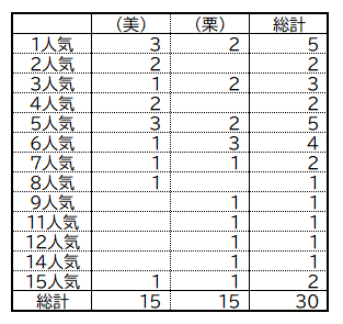 これだけをみたら東西に差はないのだが、馬券対象になった30頭の人気をみていくと