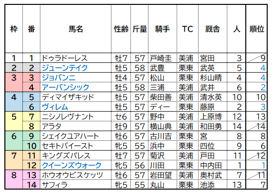 これだけ「勝つ条件が揃った」1番人気の単勝オッズが昨日の2.9倍から26時間経った当日午前11時時点で3.6倍まで上がっている不気味さはありますが、初志貫徹です。