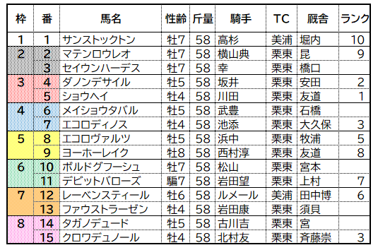 今日は題記しましたが “⑤枠順確定” をみて行こうと思います。