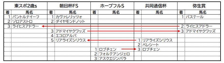 この時優勝したリアライズシリウスはその前走は年末の朝日杯FSに出走して5着でした。