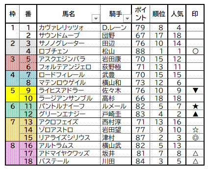 また追切・騎手等も考慮に入れて最終結果をお伝えします。