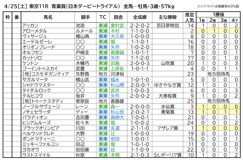 今日は日本のトライアル祭りから青葉賞を事前予想して参ります。
