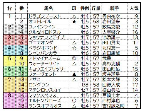 このレースは1頭を除いてはめちゃくちゃ混戦。でも今日予想する5レースの中ではメインオブメイン。