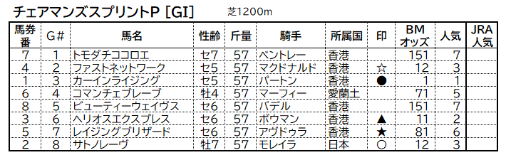 香港スプリント界の怪物カーインライジングの出番です。目を瞑ってここから買えばいいのは間違い無し。