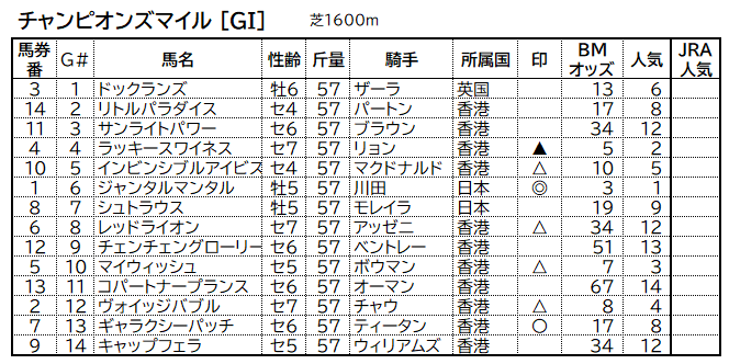 香港GI②=チャンピオンズマイル